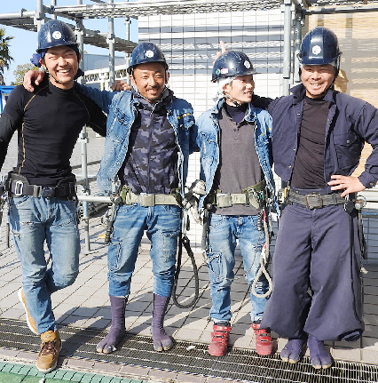 元々全然別の仕事をしてたんですけど、鳶職がカッコイイなと思ってやり始めました。実際やってみて、始めは材料の名前を覚えたりするのに苦労したりはしましたけど、先輩とか親方が優しくて丁寧に色々教えてくれたんで仕事に慣れるまでは早かったと思います。